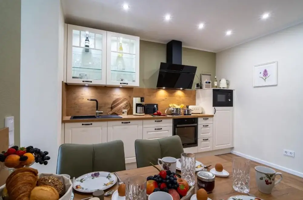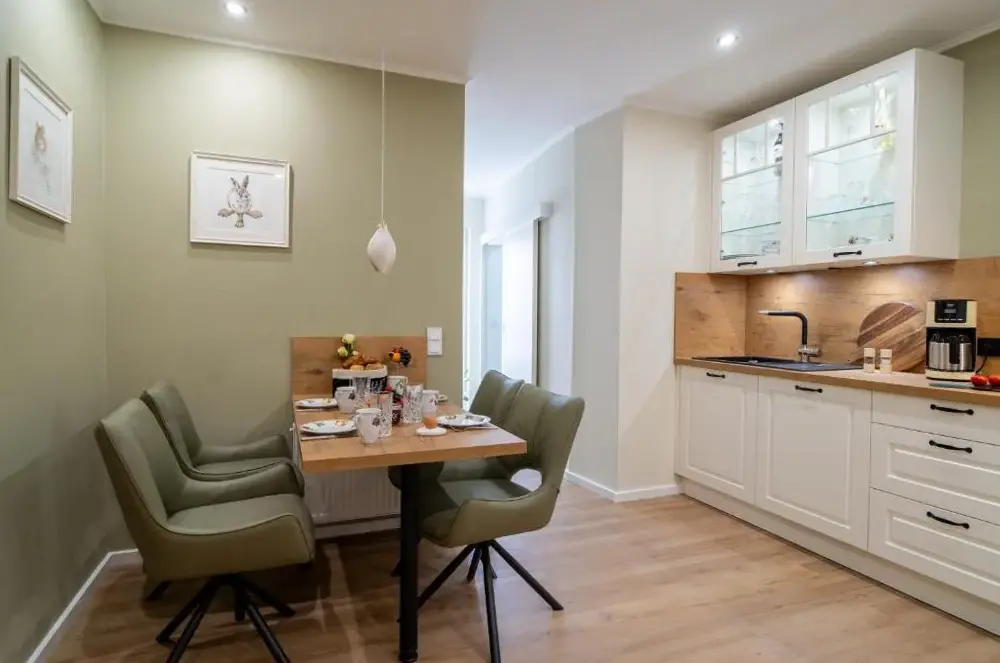 Die Lux Ferienwohnung altes Landwarenhaus liegt zentral in Friedensstraße 16, 06458 Hedersleben, und bietet eine hochwertige Unterkunft für Gäste, die Ruhe und Komfort verbinden möchten. Die Wohnung besticht durch ihre liebevolle Einrichtung sowie großzügigen Räumlichkeiten, bei denen Details nicht vernachlässigt werden. Besonders hervorzuheben sind der gemeinsame Zugang zum Garten und zur Sauna, die zusätzliche Entspannungsmöglichkeiten bieten und den Aufenthalt bereichern können. Ideal für Familien oder Gruppen wird ein separates Familienzimmer angeboten, während kostenloses WLAN und Raucherräume weitere praktische Annehmlichkeiten darstellen. Mit einem Parkplatz direkt vor Ort entfällt zudem die Suche nach einer Stellfläche. Die Umgebung lädt mit nahen Freizeitangeboten wie dem Kurpark (17 km) oder dem Brühlpark Quedlinburg (11 km) zum Verweilen ein – ebenso wie kulturelle Highlights wie das Schloss Quedlinburg oder historische Orte wie der Amtsgarten (jeweils rund 14 km entfernt). Der Standort eignet sich auch gut für Ausflüge ins nahe gelegene Braunschweig-Wolfsburg (Flugzeugentfernung ca. 68 km) oder Leipzig-Halle (ca. 81 km). Das Dorfzentrum von Gachersleben befindet sich nur etwa vier Kilometer entfernt, während lokale Einkaufsmöglichkeiten wie Tchibo innerhalb von zehn Minuten erreichbar sind.